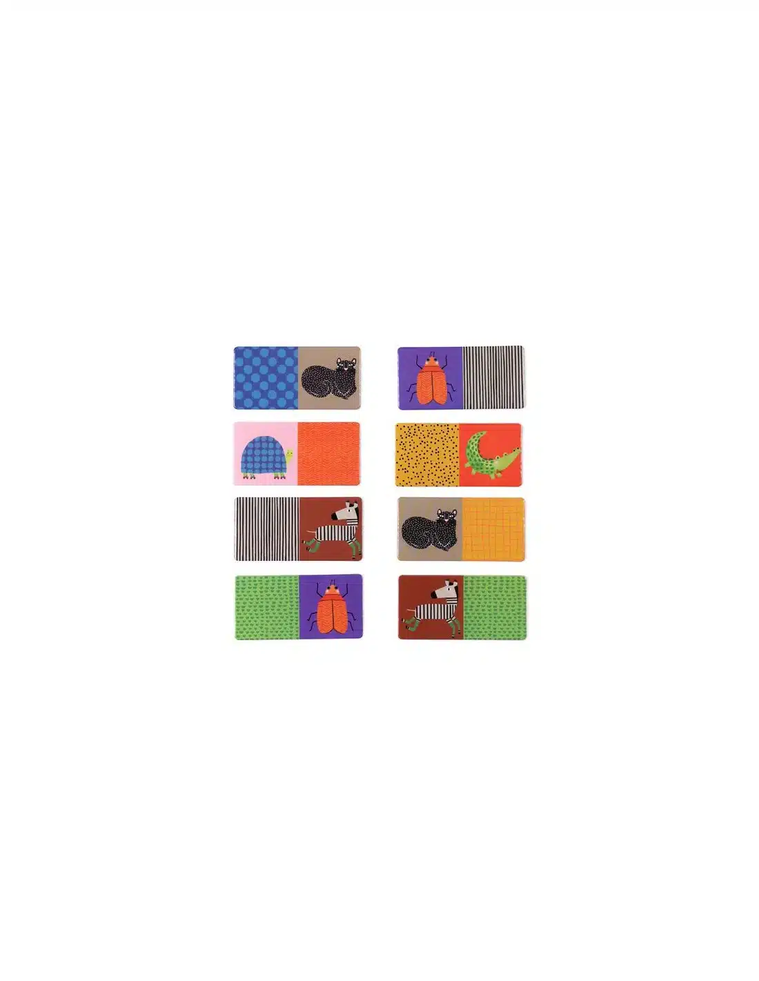 Descubre el juego de Dominó con estampados de la colección Les toupitis de Moulin Roty, un juego de dominó educativo para niños a partir de 3 años.