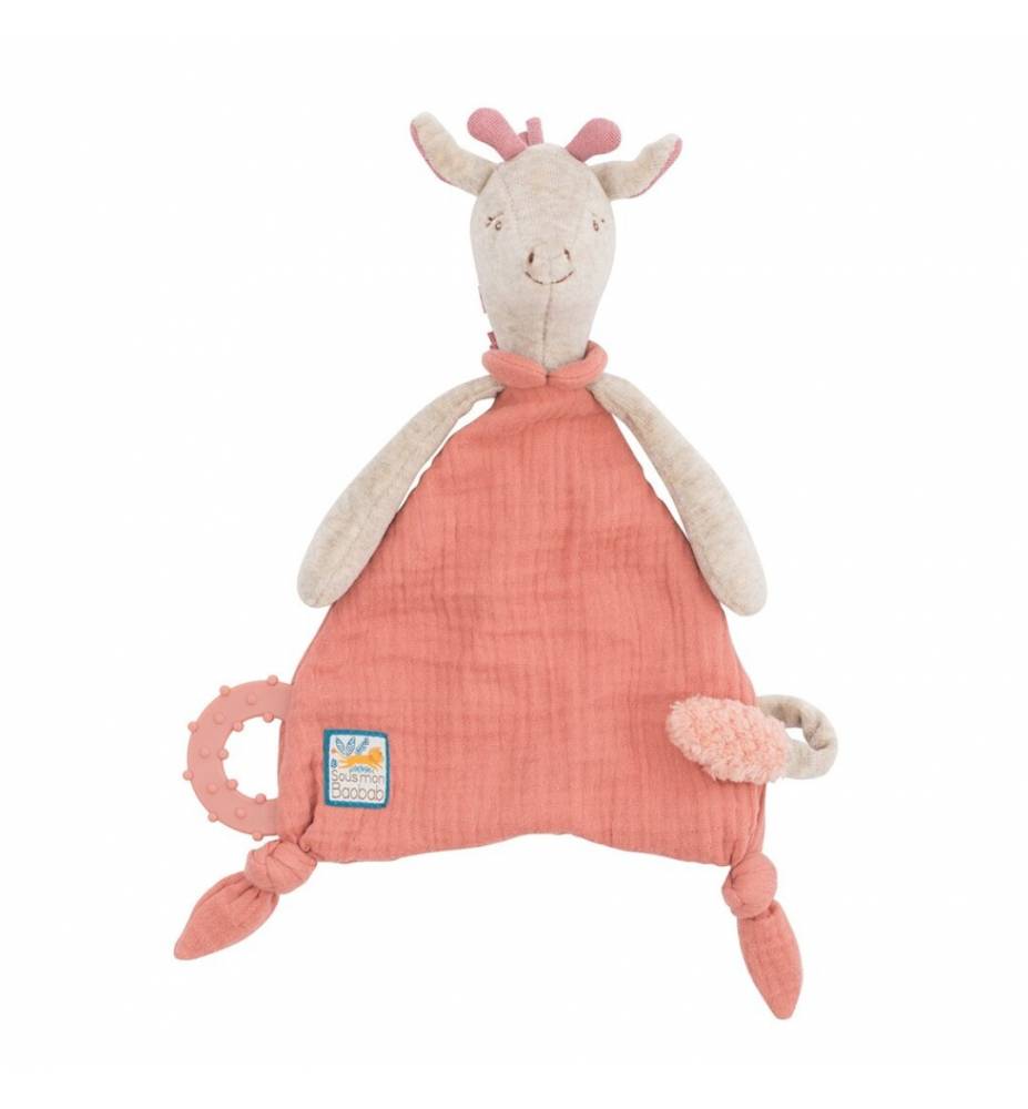 Este doudou Jirafa, de tacto muy suave, acompañará a Bebé con ternura desde el nacimiento para reconfortarle a la hora de dormir o en cualquier momento del día.