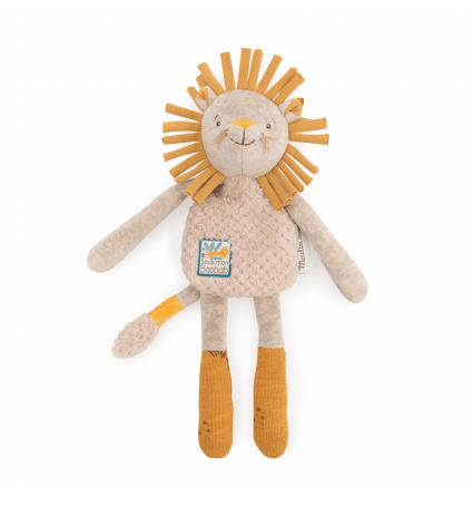 Muy fácil de agarrar por manitas pequeñas: por los brazos, por la cola, por la trompa, por las piernas o por su mullidito y fino cuerpo. Este león acompañará con ternura a tu peque desde el nacimiento, estimulando su sentido auditivo y sus habilidades motoras.