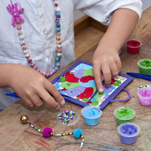 Eco Painting es una actividad creativa que permite colorear un bonito cuadro con pintura especial creada a partir de la corteza de morera.