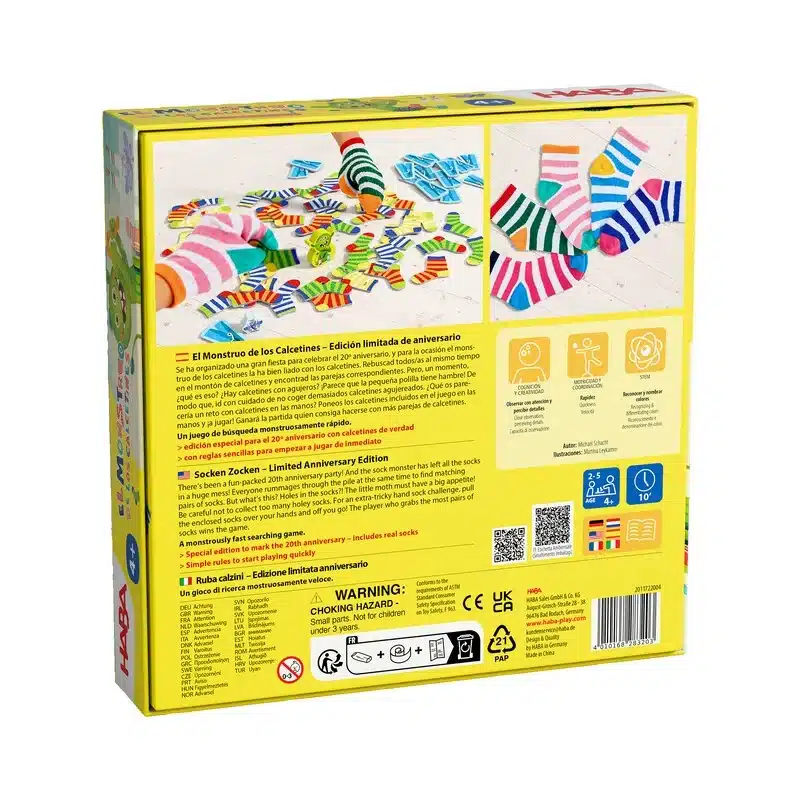 El Monstruo de los Calcetines – Edicion Aniversario es un juego de mesa para niños donde todos los jugadores juegan al mismo tiempo buscando parejas de calcetines.