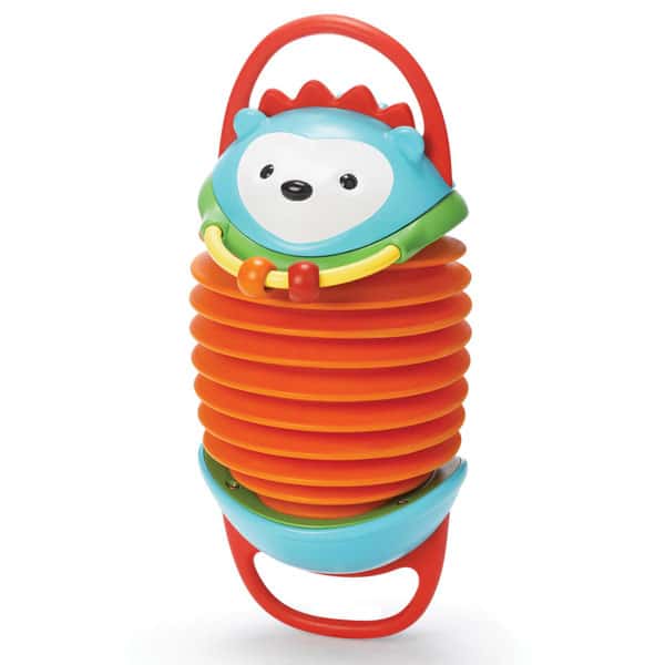 Este erizo en realidad es un bonito acordeón con el que los peques podrán introducirse en el mundo musical. Diseñado con asas fáciles de agarrar, es perfecto para manos pequeñas. El peque deleitará al descubrir una variedad de melodías únicas mientras empuja y tira del acordeón. Este adorable erizo tiene vivos colores, cuentas móviles y detalles de goma para la dentición.