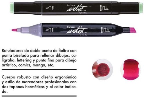 Estuche 40 rotuladores profesional markers doble punta. Rotuladores de doble punta de fieltro con punta biselada para rellenar dibujos, califrafía, lettering y punta fina para dibujo artístico, comics manga, etc.