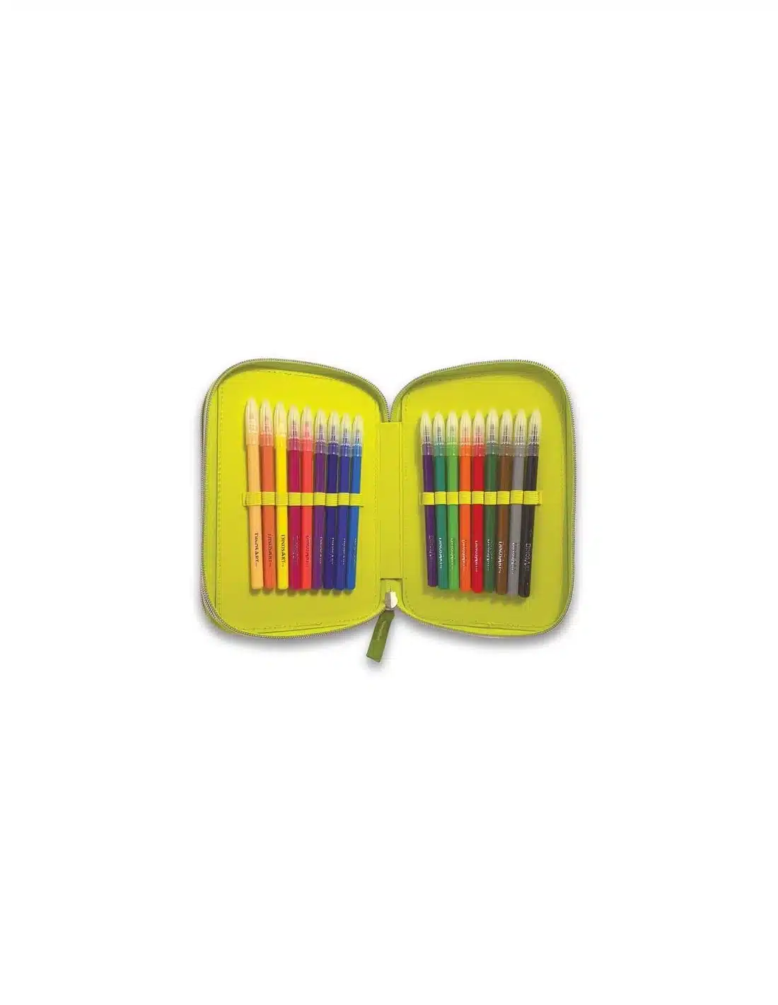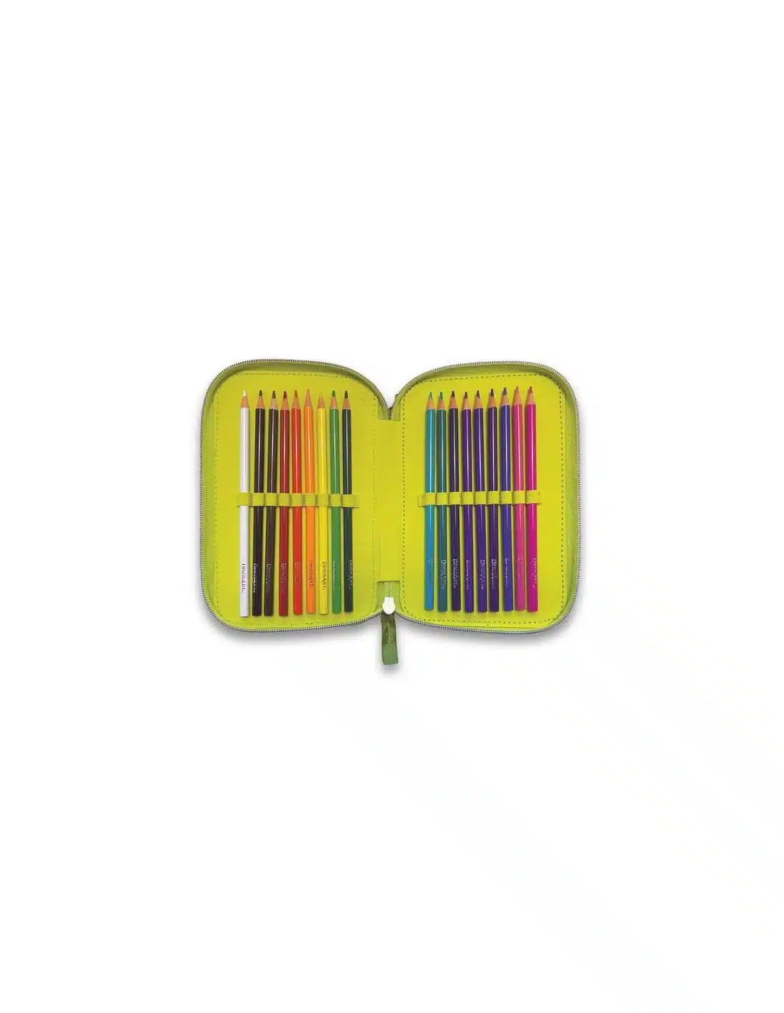 Este estuche de lujo con 3 compartimentos ofrece un juego de papelería completo además de una variedad de lápices y marcadores.