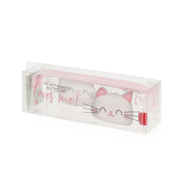 El diseño incluye un gatito en la parte frontal, con detalles delicados y una cremallera de calidad que asegura un uso cómodo y duradero. Compacto pero espacioso, es ideal para estuches escolares, bolsos o mochilas.