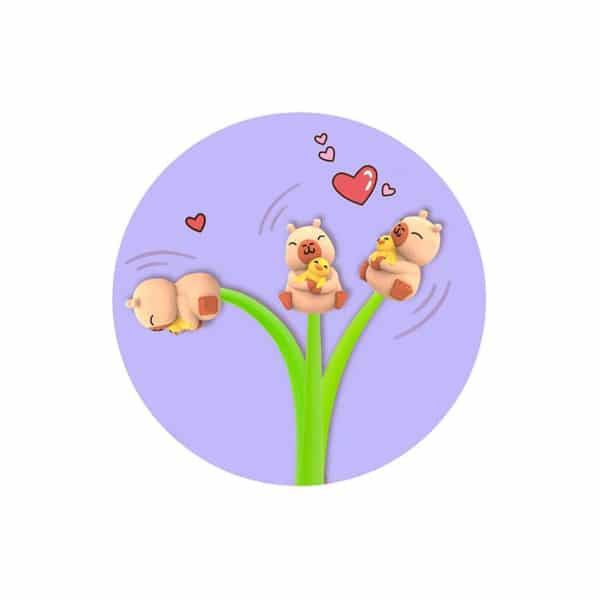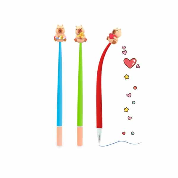 Un bolígrafo de punta fina con diseño de capibara que se balancea, perfecto para escribir, dibujar y coleccionar.
