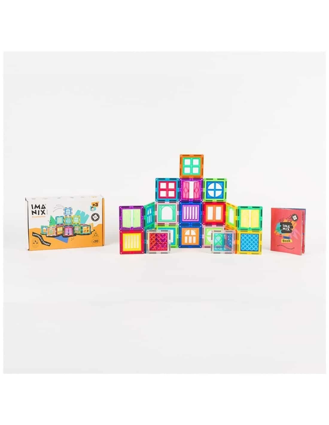 Un pequeño set de 20 piezas magnéticas con ventanas para completar el mundo imanix. Invita a crear en 3D o 2D dando rienda suelta a la imaginación y creatividad. Podrán crear animales, torres, letras, patrones, y mucho más. Sus piezas magnéticas incluyen remaches metálicos y refuerzos interiores para mayor seguridad. Las piezas son grandes y fáciles de agarrar al igual que sus imanes, potentes, se atraen siempre. ¡Es tan espectacular que no podrán parar de crear!