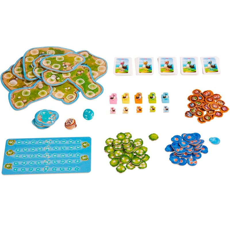 35 fichas de nido (2 con 2 polluelos, 5 con 1 polluelo de cada color)