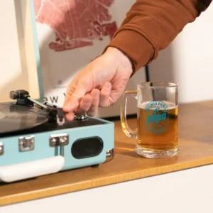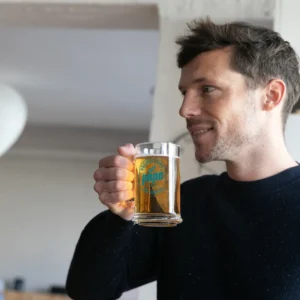 Jarra de cerveza realizada en vidrio con mensaje para padres.