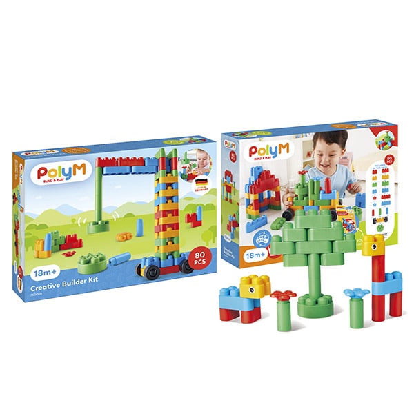 Los bloques Poly-M están especialmente diseñados para los pequeñitos de la casa. Sus bordes redondeados y su material suave, flexible y lavable los convierten en una opción más que acertada. Con el set «Creative Builder Kit» de Poly-M, los peques dejarán volar su imaginación mientras crean una multitud de elementos creativos. ¡Las posibilidades de juego son infinitas!