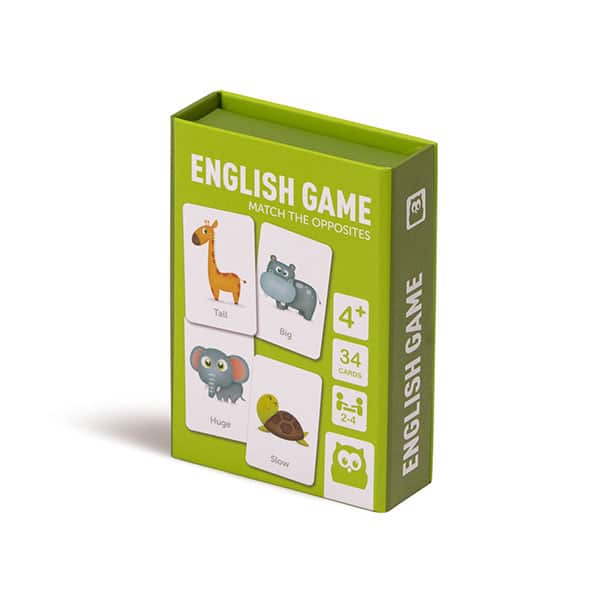 Con este bonito juego de cartas los peques van a aprender con facilidad los contrarios (adjetivos) en inglés además de desarrollar la memoria. Con estas bonitas cartas ilustradas con diferentes animalitos del mundo, los peques deberán emparejar los contrarios con tal de formar pareja. Ganará el jugador que tenga más cartas.