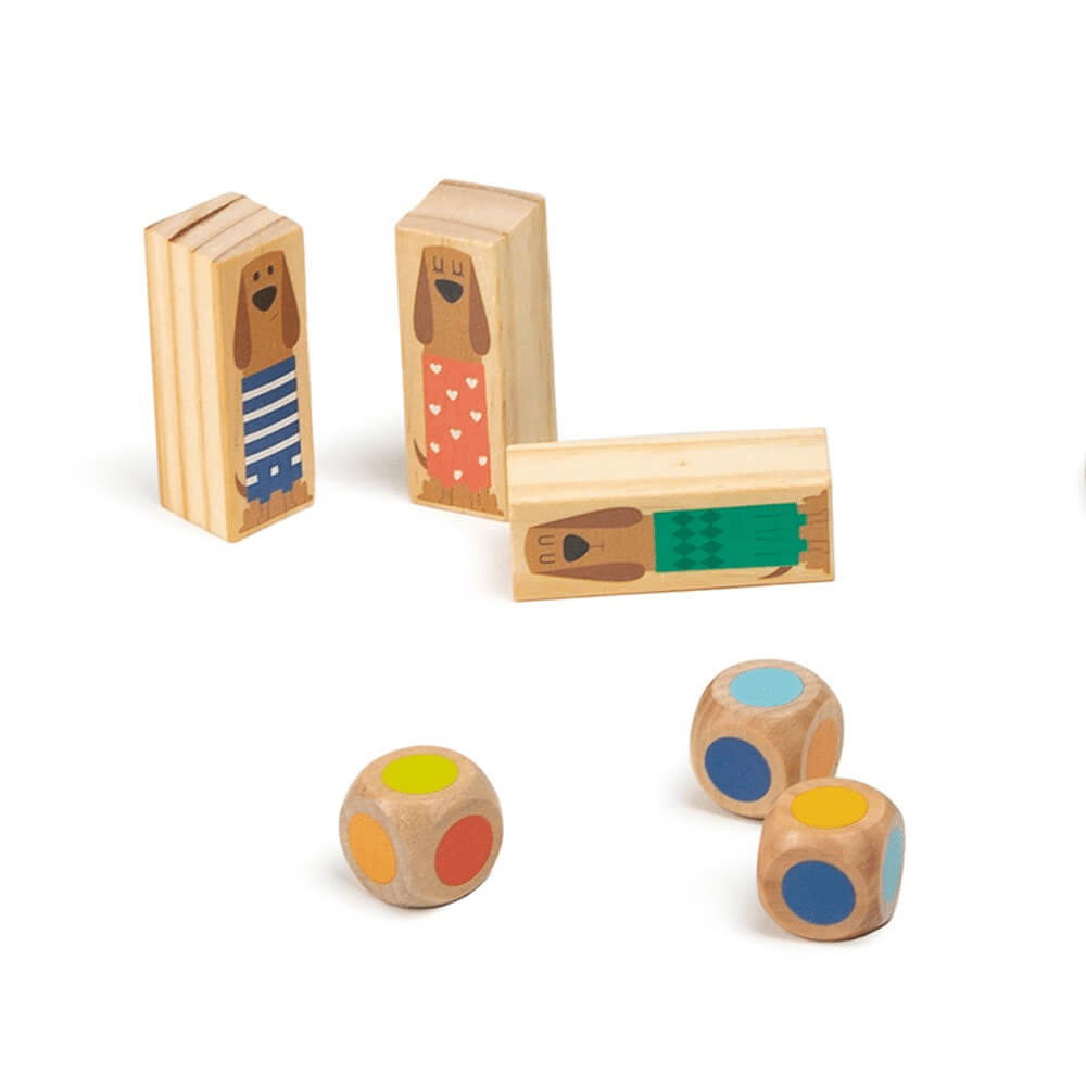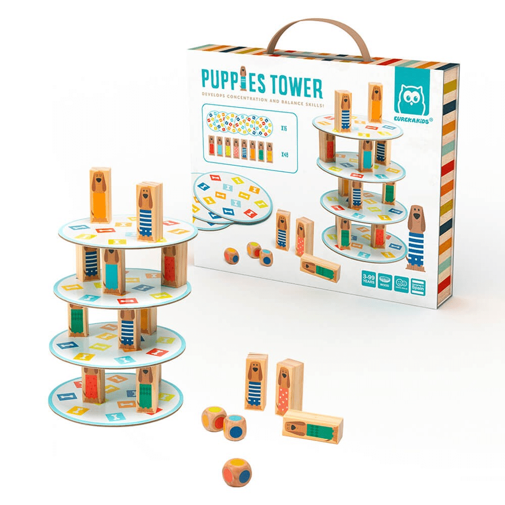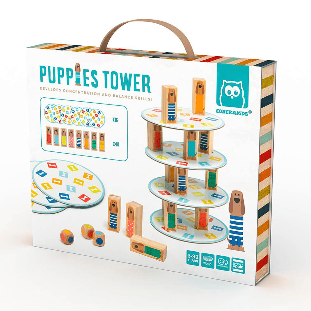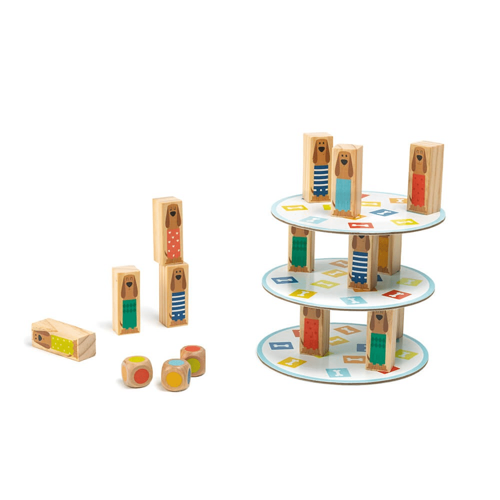 En este juego de estrategia los participantes deberán construir la torre más alta posible sin que se caiga. En cada turno, el jugador deberá colocar un disco, tirar 3 dados y colocar 3 perritos en el disco seg˙n el color que indiquen los dados. Deberán buscar el equilibrio perfecto para que la torre se mantenga firme y no se caiga. El jugador que lo consiga será el ganador de la partida. Este juego es ideal para potenciar la concentración y el pensamiento estratégico. Edad: A partir de 3 años. Características: – Incluye: 16 discos de cartón con diferentes colores, 48 perritos de madera y 3 dados de colores. – Diseñado en España Dimensiones: Packaging: 30cm x 25cm x 5cm
