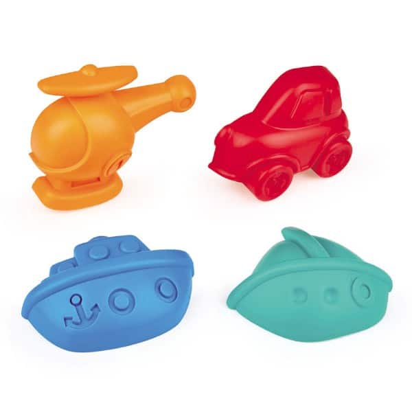 – Incluye 4 piezas: helicóptero, coche, barco y lancha.