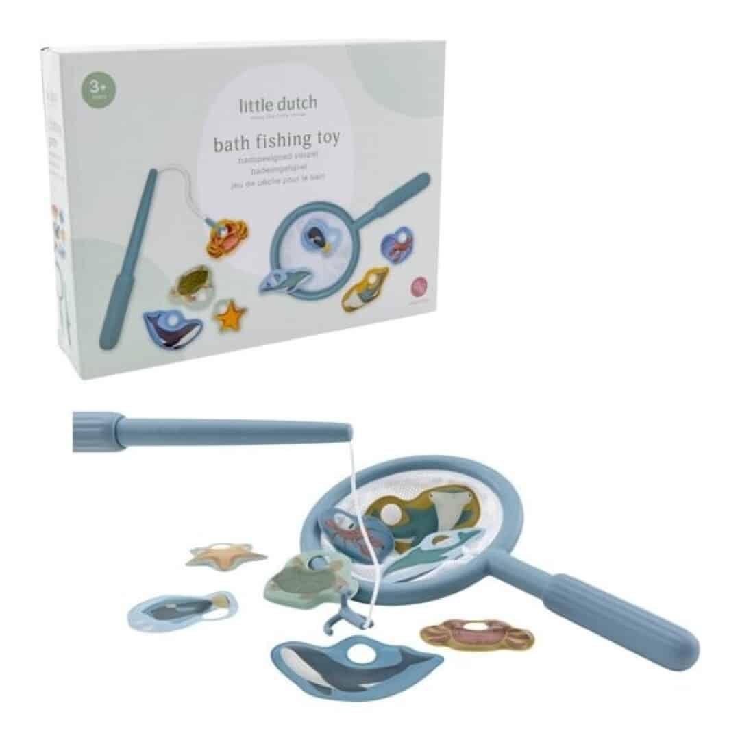 Juego de Pesca de Baño Azul – Juguete acuático con red y animales marinos – Little Dutch – Diversión desde 3 años