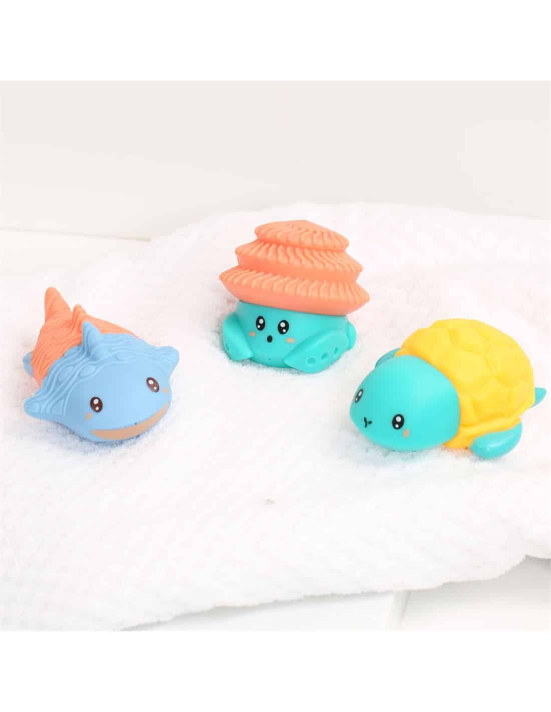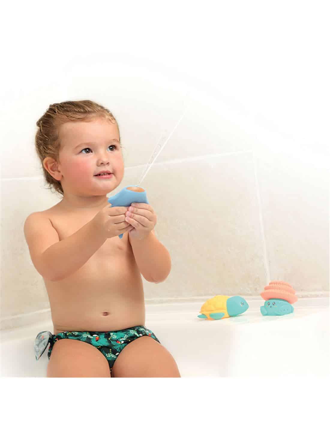 Fáciles de lavar y fabricados en silicona suave, estos 3 rociadores de agua son muy buenos para una higiene perfecta, estos juguetitos son aptos para lavavajillas.