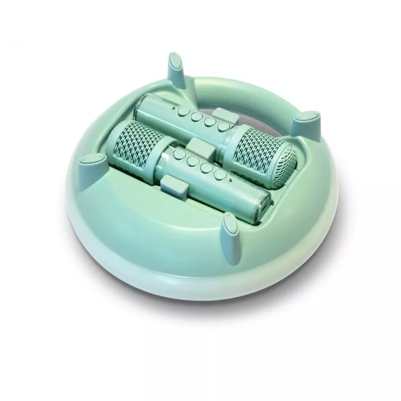 Convierte cualquier lugar en un escenario con el KIDYKARAOKE de Kidywolf. Este sistema de karaoke portátil cuenta con un potente altavoz de 40W, dos micrófonos inalámbricos y efectos de sonido y luces multicolores para animar tus fiestas.