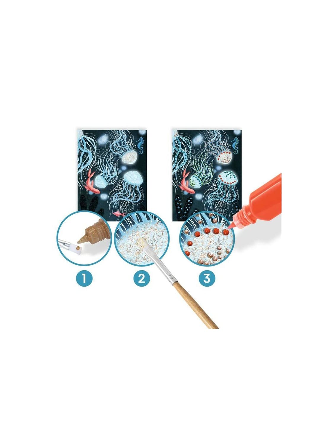 Un completo kit con cuatro actividades artísticas para que los peques den rienda suelta a su imaginación entre criaturas marinas.