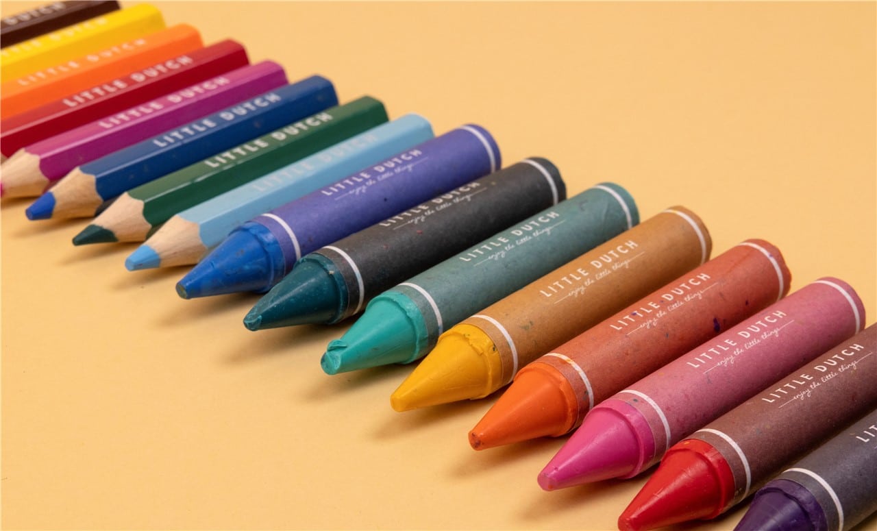 Estos lápices de colores de madera vienen en un set de 8, son cortos para un fácil agarre, incluye un sacapuntas especial.