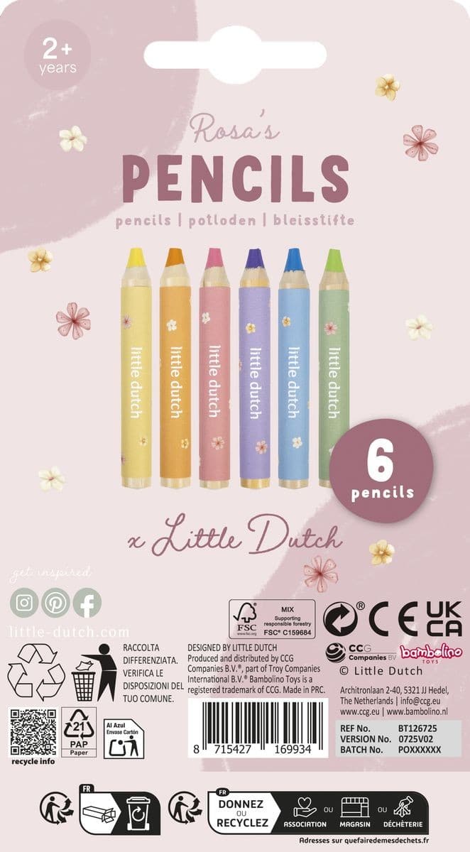 Fabricados con materiales seguros y de alta calidad, los lápices se presentan en una caja ilustrada con los encantadores diseños de Little Dutch, convirtiéndose en una opción perfecta para regalar o para acompañar cualquier kit de arte infantil.