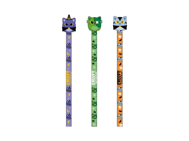 Lápiz con goma 3D inspirada en divertidos monstruos de la colección Creepy Vibes, perfecto para escribir, dibujar o añadir un toque diferente al estuche.