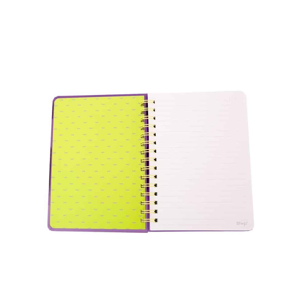 Libreta de tamaño A5 con tapa dura, encuadernación en espiral y un diseño en su portada que, en parte, brilla en la oscuridad. Con xxx hojas con certificación FSC, que garantiza que ha sido fabricada con papel proveniente de bosques gestionados de forma responsable.