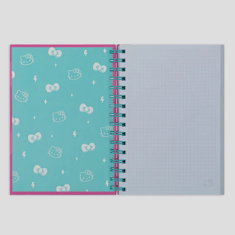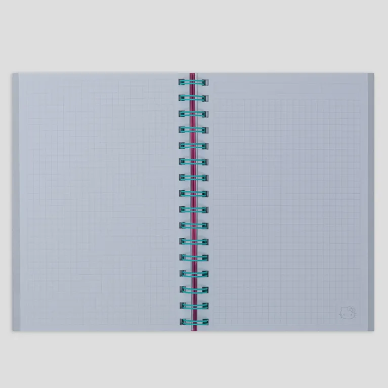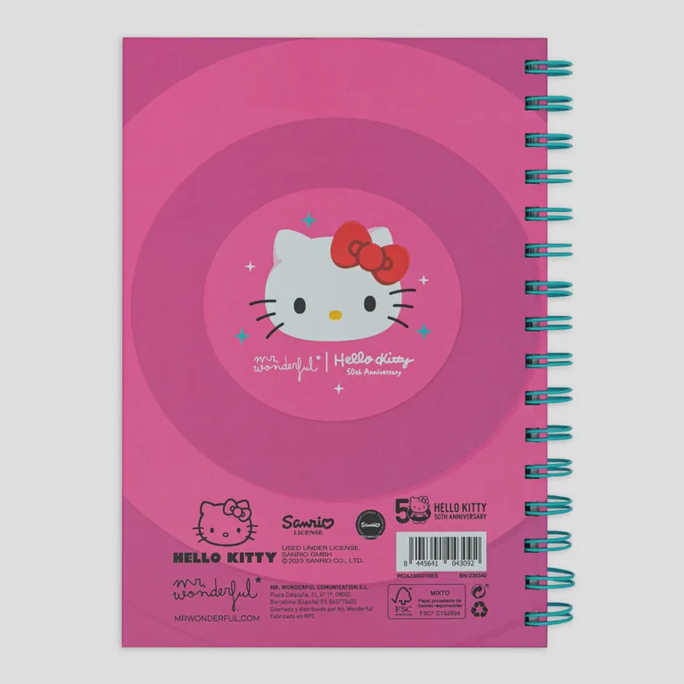 Libreta tamaño A5 realizada en colaboración con Hello Kitty para su 50º aniversario. Con encuadernación en espiral y 200 páginas de 90 gr. Incluye 1 hoja de pegatinas. Cuenta con el certificado FSC, que garantiza que ha sido fabricada con papel proveniente de bosques gestionados de forma responsable.