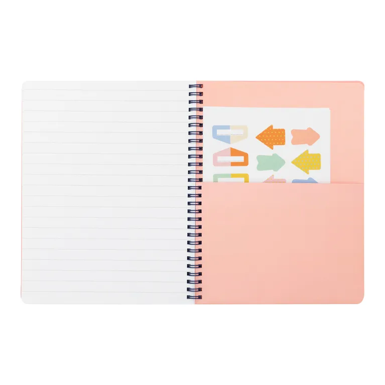 Libreta de tamaño A5, con encuadernación en espiral y un divertido mensaje de amor en su portada.