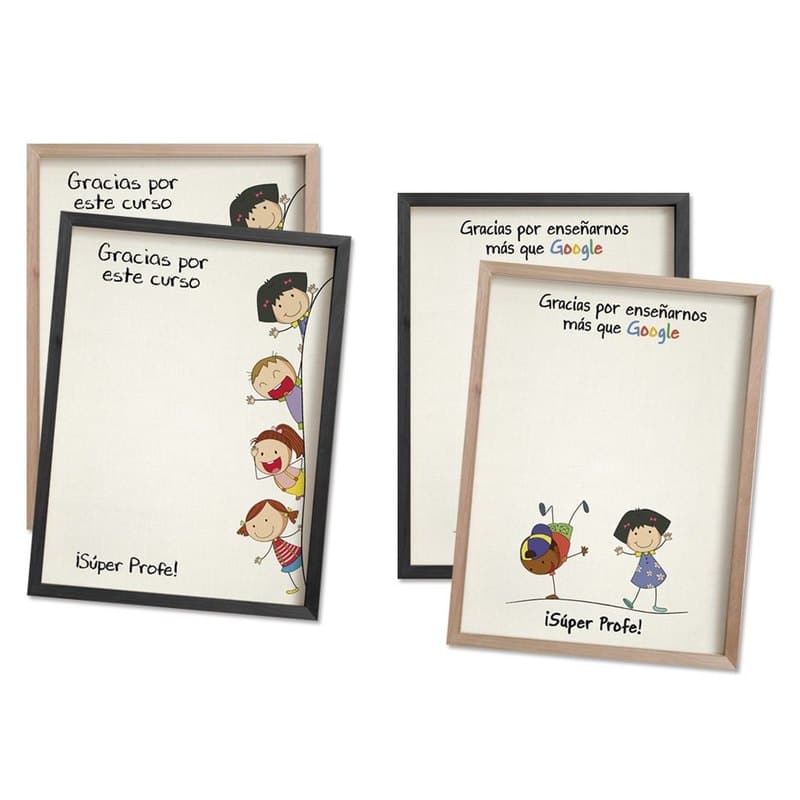 Lienzo de firmas para regalo de profesores con marco 30x40cm. Incluye 2 bolígrafos (dorado y negro)