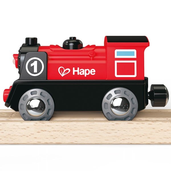 ¡La locomotora del tren N°1 tiene una pequeña luz en la parte delantera que ayuda a ver en la oscuridad mientras circula! ¡Pulsando el botón, la pequeña locomotora irá marcha atrás!
