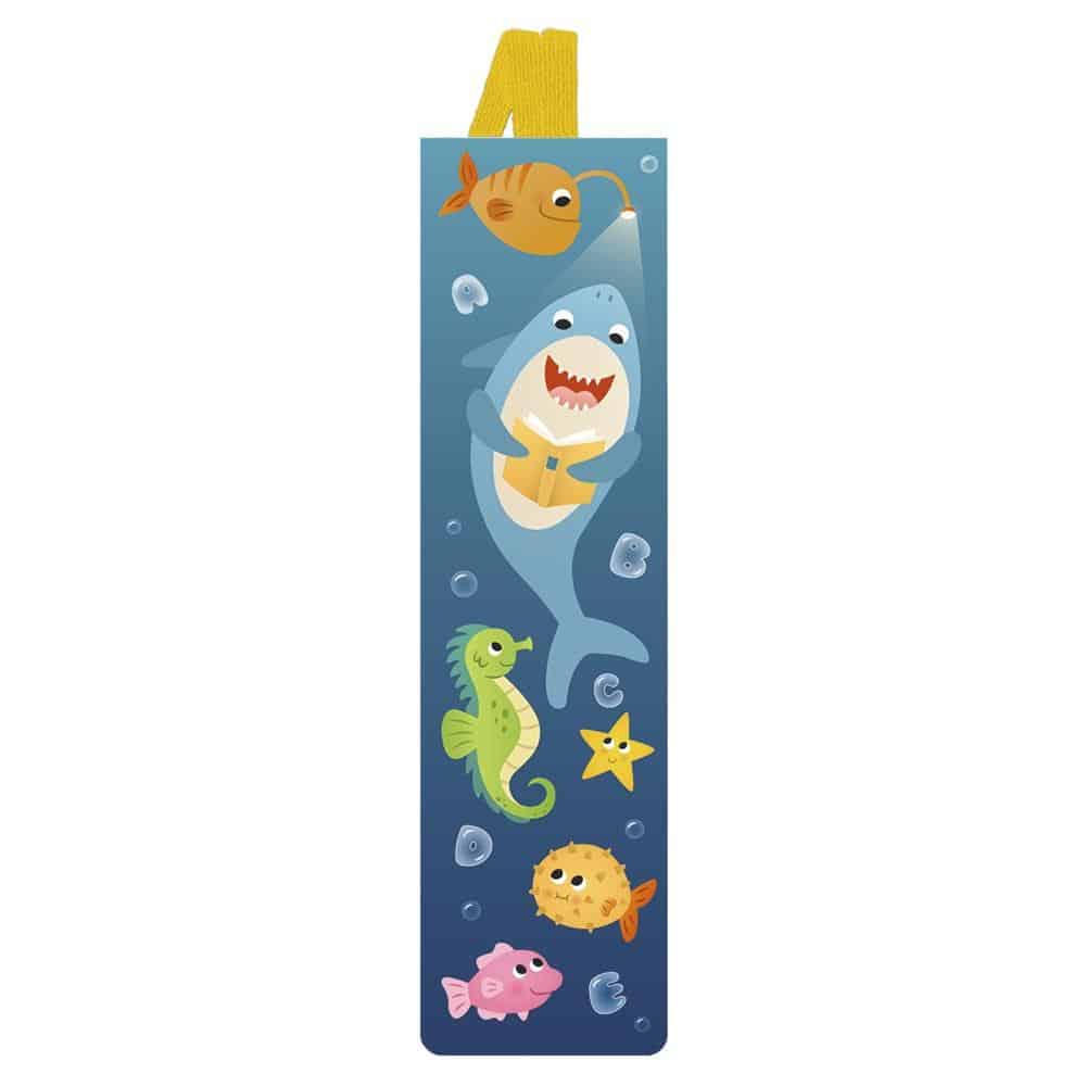 Marcapáginas ilustrado con una cuerda de marcador en color amarillo y un divertido diseño oceánico. ¡Perfecto para continuar la lectura donde la dejaste!