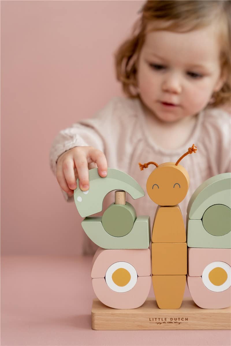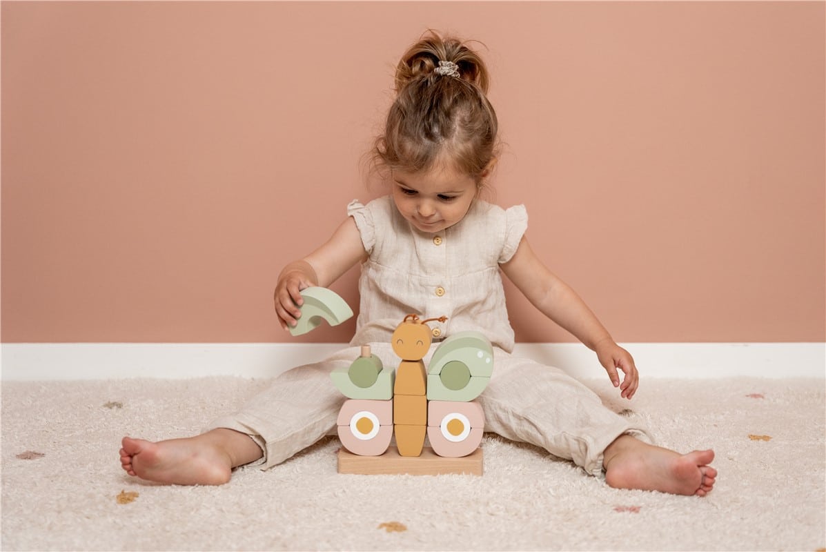 ¡Construyamos juntos una mariposa! Este encajable de 14 bloques es un verdadero desafío. Coloca las piezas en el soporte una a una e intenta crear un velero. O haz tu propia creación. ¡No olvides levantar la bandera cuando hayas terminado! El encajable de la colección flores & mariposas apoya la coordinación mano-ojo, pero también es un buen elemento decorativo para la guardería.