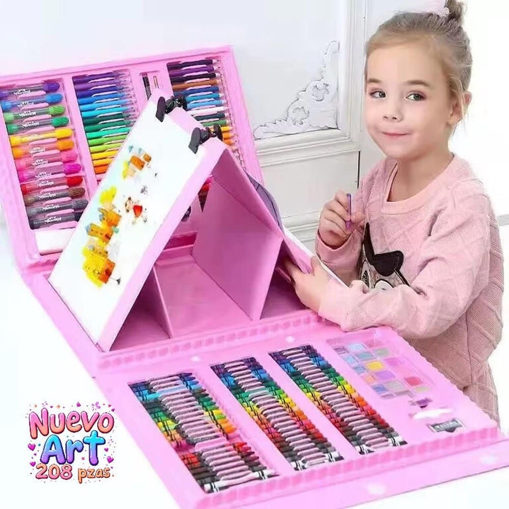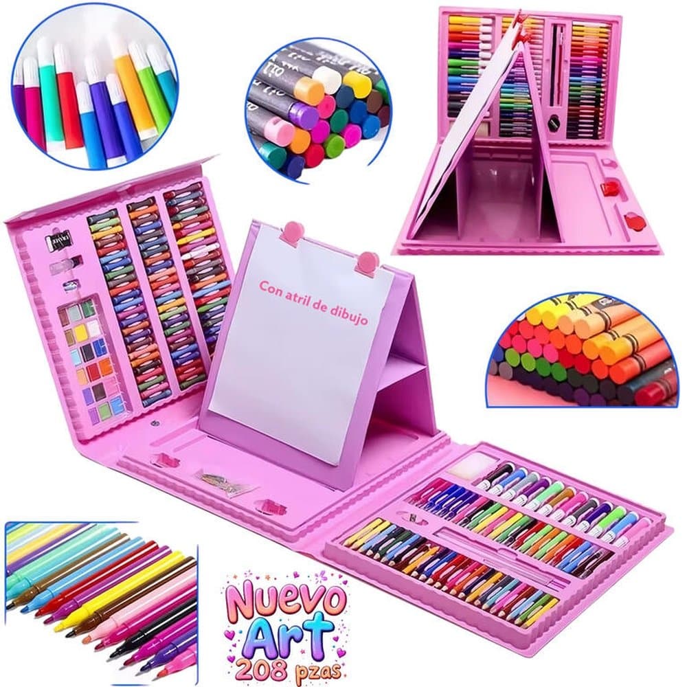 Mega Set 208 Piezas con Atril de Dibujo Rosa – Set artístico completo para niños