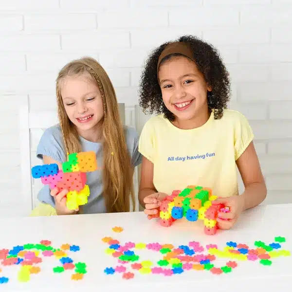 Set de bloques de construcción encajables en colores neón vibrantes, ideal para estimular la creatividad, motricidad fina y pensamiento lógico en niños. Incluye 500 piezas en una práctica caja transportable, perfecto para jugar en casa o en cualquier lugar.