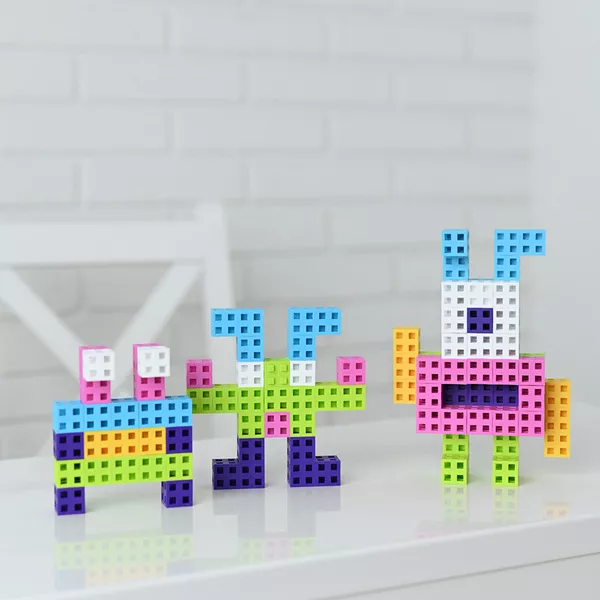 Estos bloques fomentan el desarrollo de habilidades motoras, la coordinación mano-ojo y la lógica espacial, ayudando a los niños a fortalecer su pensamiento lógico y creatividad desde una edad temprana.