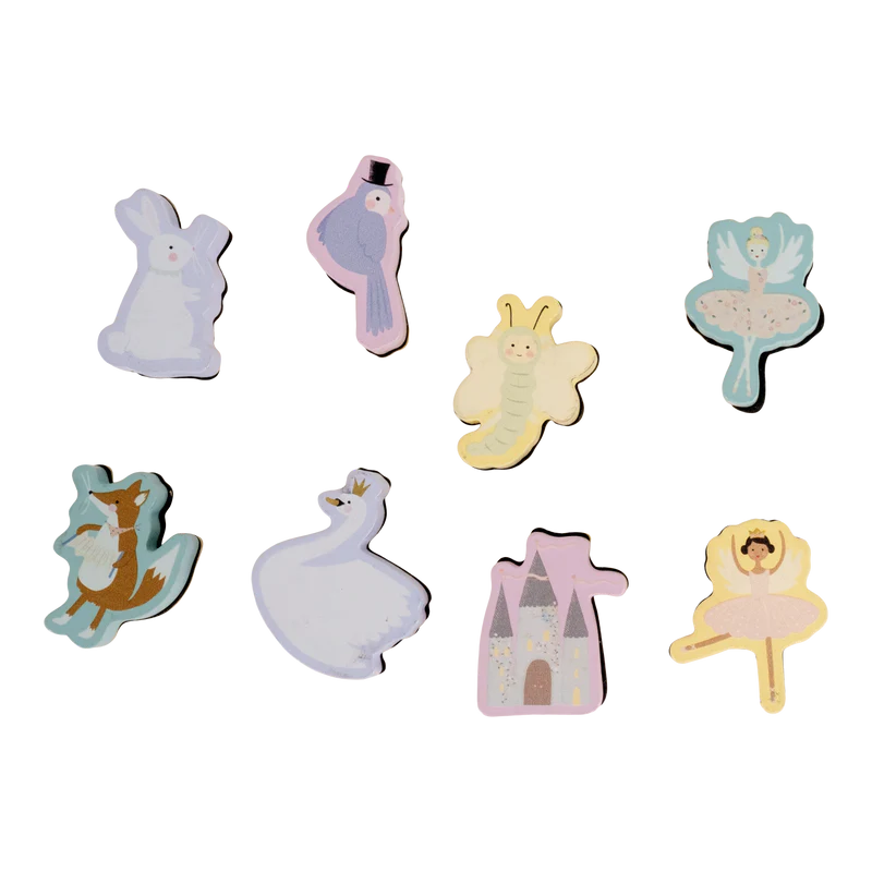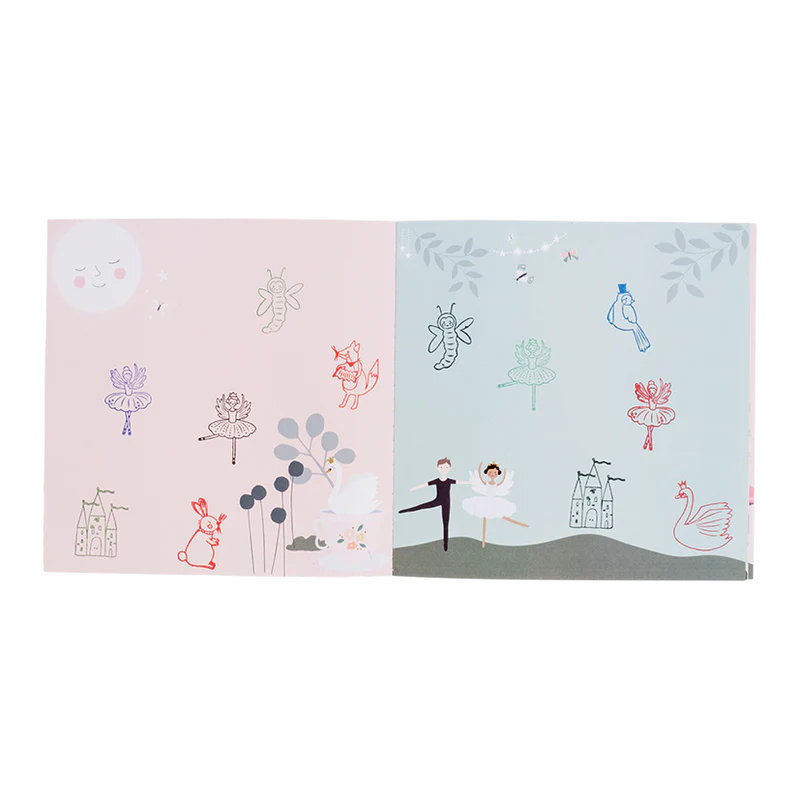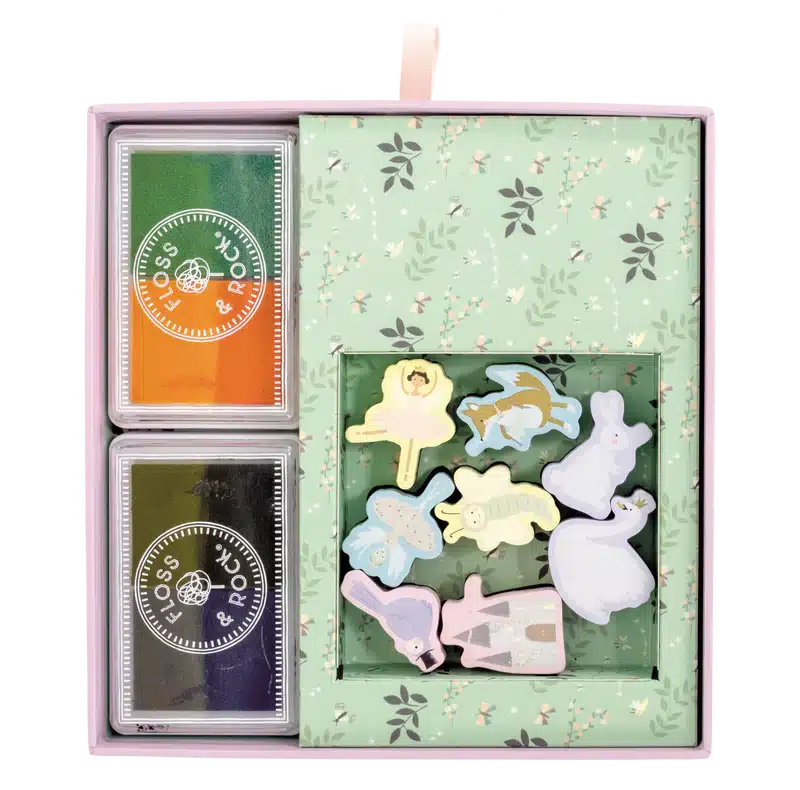 Nuestro diseño Enchanted presenta muchos de tus favoritos, incluidos los sellos de bailarina, castillo, lindos animales del bosque y pájaros. Abre el folleto de 24 páginas para encontrar escenas divertidas con más amigos Enchanted, luego sé creativo usando los sellos y las almohadillas de tinta provistos para decorar las escenas e inventar historias y escenarios divertidos con sellos de colores.