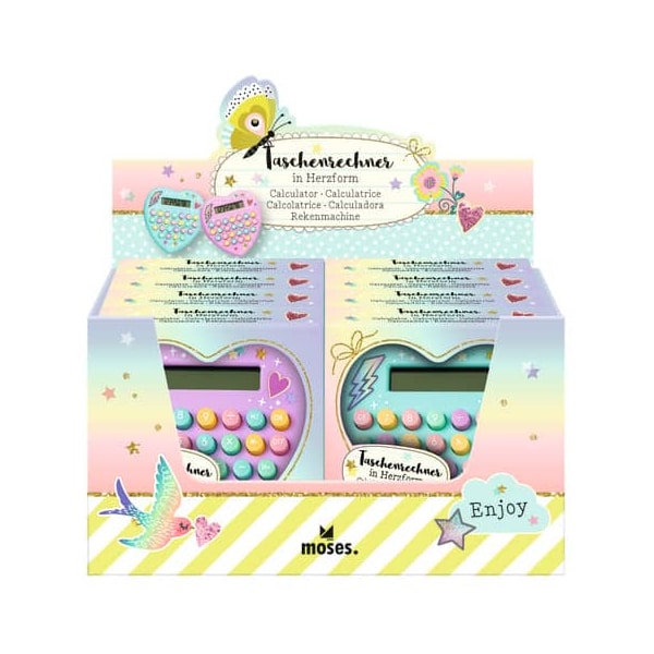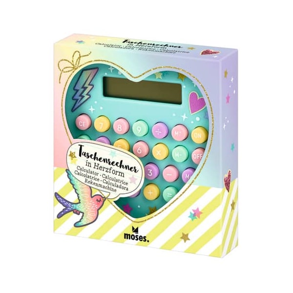 Mini calculadora pastel Moses con botones de colores, perfecta para llevar en la mochila. Pilas de botón incluidas (1xLR1130)