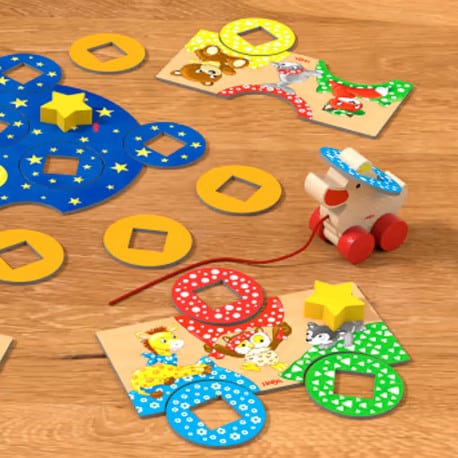 Sombreros de Pato es un juego de mesa para los más pequeños en el que se entrena el reconocimiento y la asignación de patrones, así como las habilidades motoras.