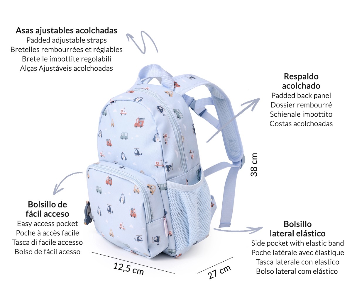 Mochila Infantil City Cars – Tutete | Personalizable, impermeable y con diseño urbano