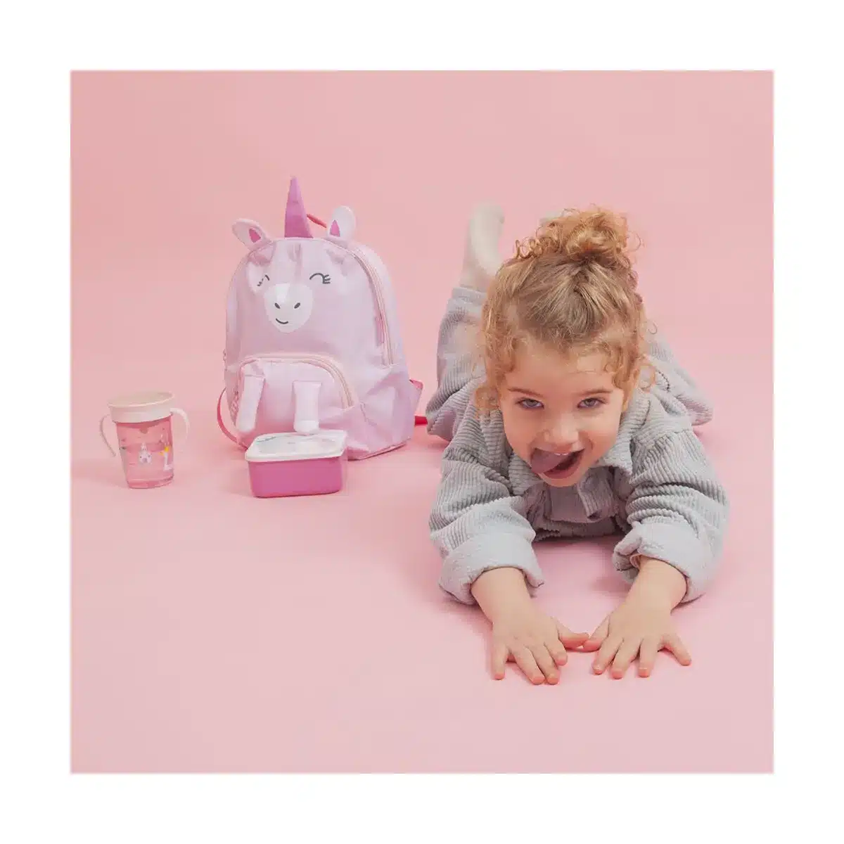 La Kiddie Sack Fantasy de Miniland es perfecta para el día a día de los peques: ligera, fácil de usar y decorada con un adorable unicornio.🦄✨