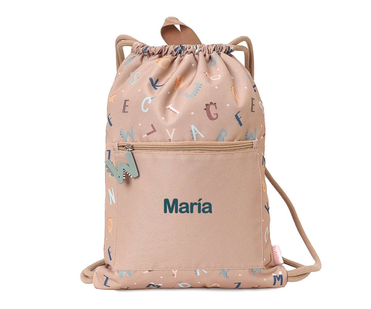 Cuenta con cordones ajustables para colgar cómodamente a la espalda y un bolsillo exterior con cremallera, decorado con un tirador de silicona exclusivo de la colección. Además, puedes personalizarla con el nombre de tu peque bordado en el bolsillo, ideal para evitar pérdidas y fomentar su autonomía.