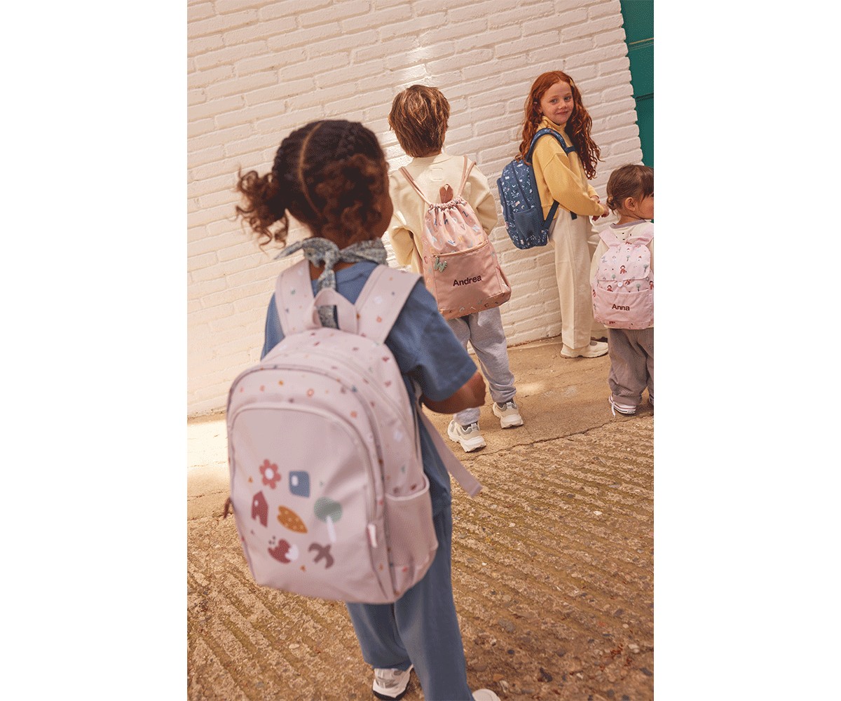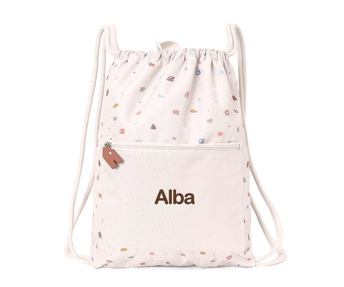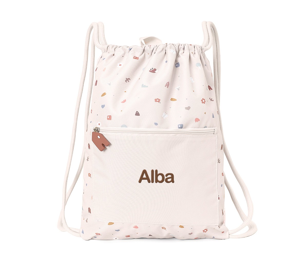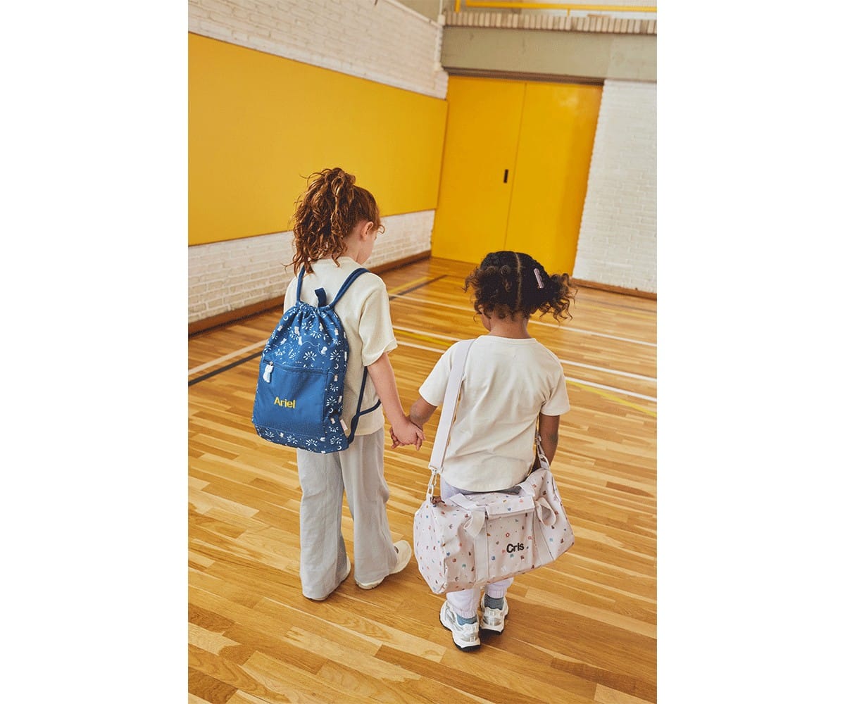 Cuenta con asas de cordón ajustables, asa superior para colgar y un bolsillo exterior con cremallera, adornado con un tirador de silicona exclusivo de la colección. Para un toque personal, se puede bordar el nombre del peque en el bolsillo, ayudando a identificarla fácilmente.