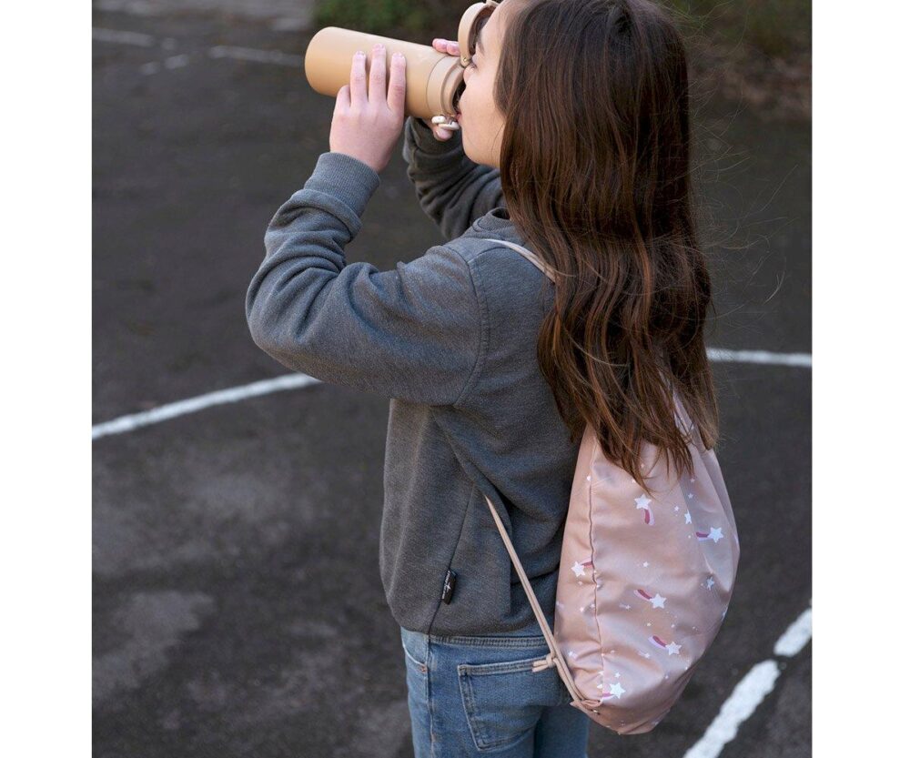 La mochila saco es una bolsa pequeña y liviana que lleva tirantes de cuerdas que, al tirar de ellos, también cierran la bolsa.