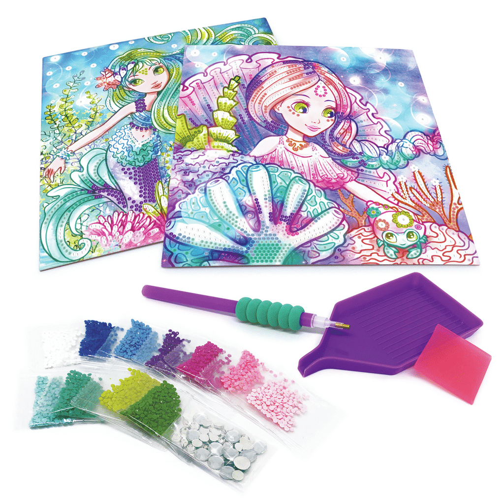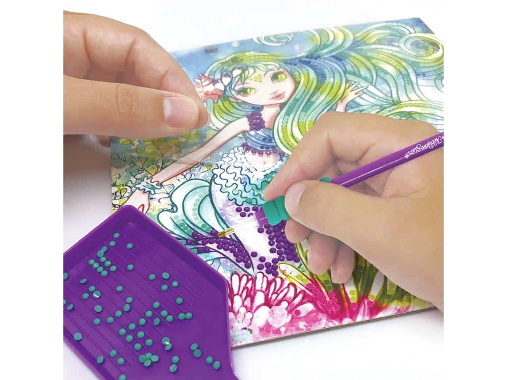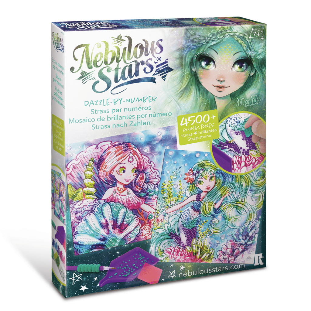 Este precioso set de manualidades creativas permite a niños y niñas crear auténticas obras de arte brillantes colocando diamantes adhesivos sobre ilustraciones mágicas del universo de Marinia, uno de los personajes de la colección Nebulous Stars. Cada número en la lámina guía al peque para colocar cada piedra en su sitio, desarrollando así la concentración, la precisión y el gusto por el detalle.