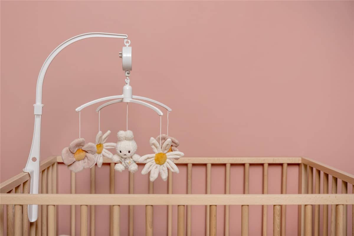 ¡Sigue a miffy cuando empiece a sonar la canción de cuna! Está rodeada de las flores más bonitas de la colección Flores Vintage de Little Dutch. Mientras las flores y miffy dan vueltas alrededor, el dulce sonido de una canción de cuna te tranquilizará. Maravilloso entretenimiento para tu pequeño que estimula el desarrollo visual. El móvil musical es adecuado desde el nacimiento y se puede acoplar fácilmente a una cuna o parque infantil.