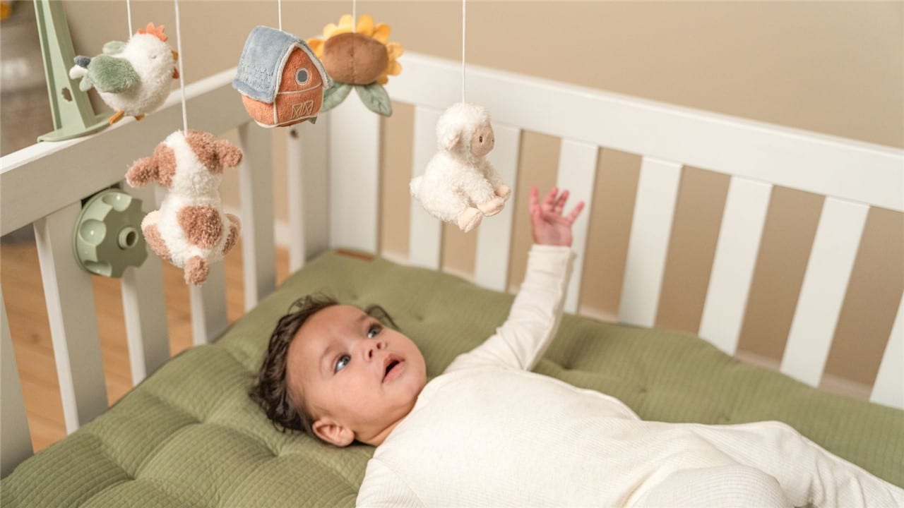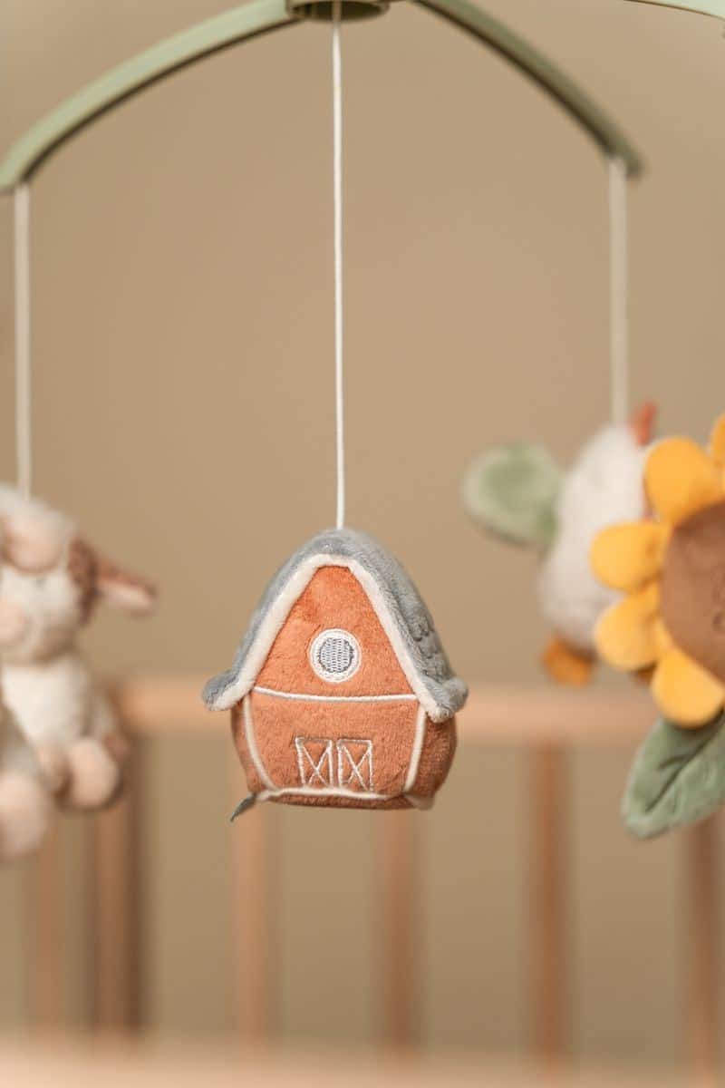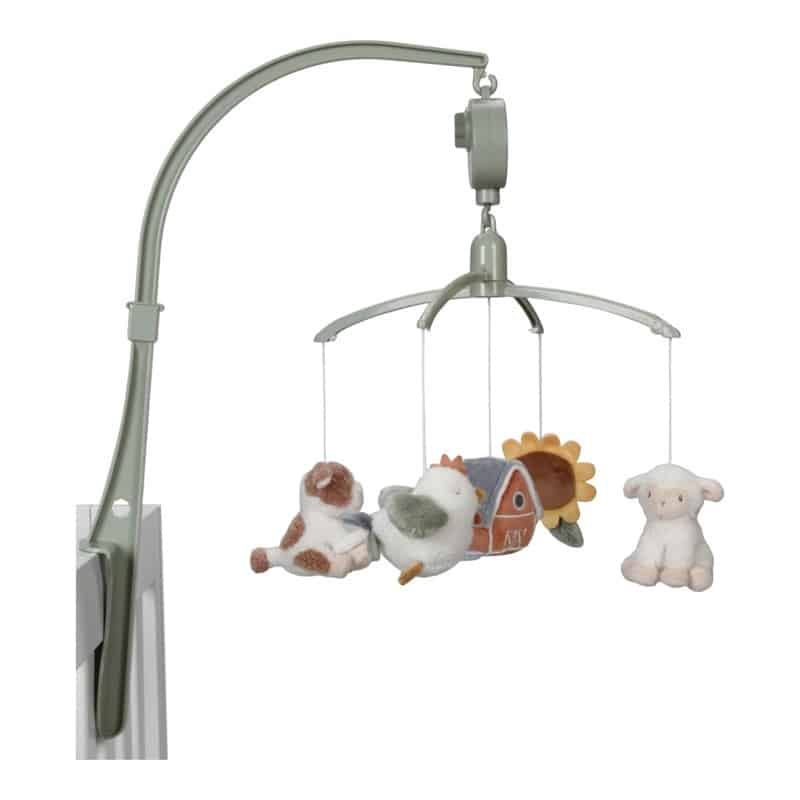 Este hermoso móvil musical de Little Dutch tranquiliza a los bebés gracias a su dulce canción de cuna. Del móvil cuelgan cinco juguetes de la colección Little Farm. Los bebés disfrutan viendo el movimiento de estos juguetes, lo que estimula su desarrollo visual. El móvil musical es adecuado desde el nacimiento y fácil de fijar a la cuna o al parque. ¡ADVERTENCIA! Coloque este juguete fuera del alcance del niño. Para evitar posibles lesiones por enredo, retire este juguete cuando el niño comience a intentar levantarse sobre manos y rodillas en posición de gateo. Se requiere ensamblaje por parte de un adulto.