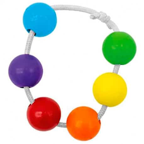 Las cuentas de pintura de cera van atadas a una cuerda, así que todos los colores permanecen juntos y ninguno se pierde.