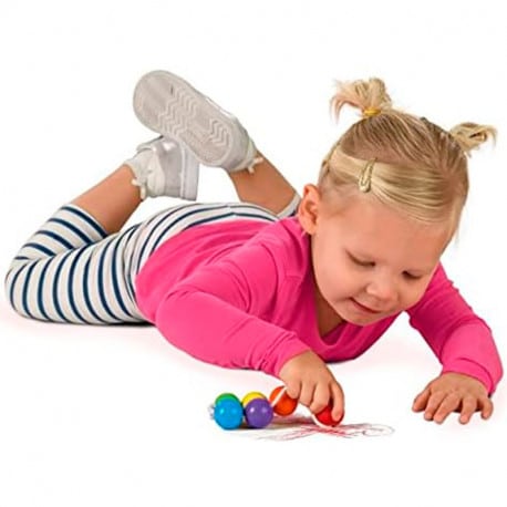 Además, la forma esférica facilita el agarre y la pintura y entrena las habilidades motoras finas y la coordinación ojo-mano.