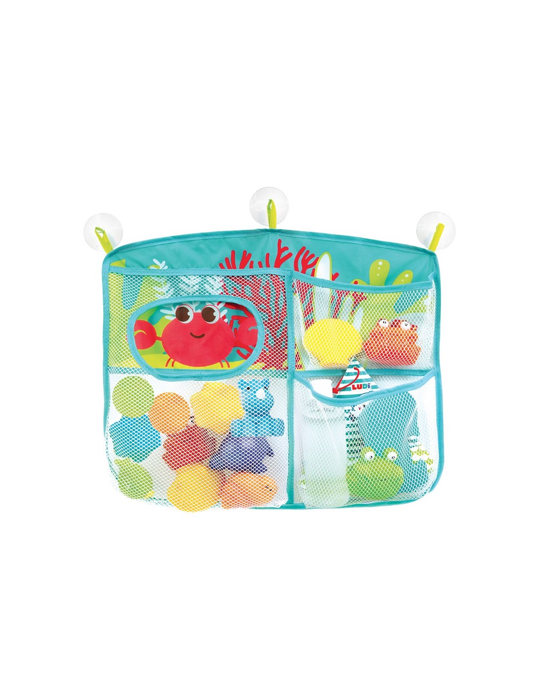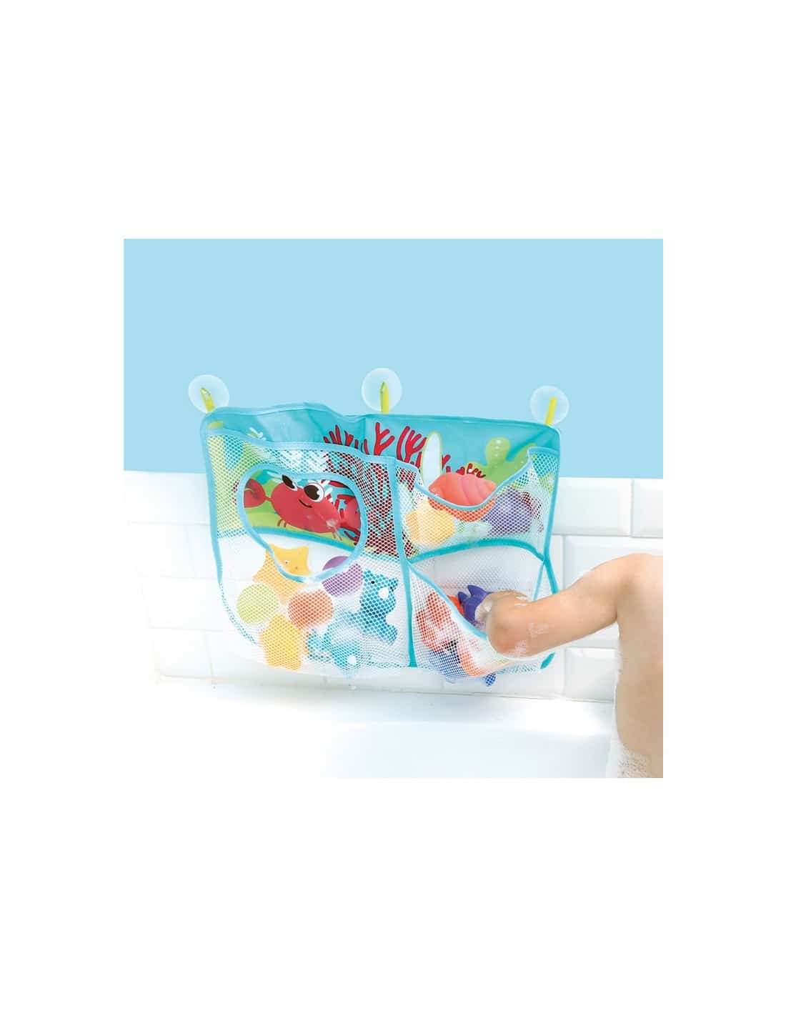 Los aspersores se guardarán rápidamente en su red de baño. Práctico y estable, se fija a los azulejos oa la pared de la bañera mediante sus dos ventosas. Los juguetes se secan perfectamente en él, no más desorden alrededor de la bañera. Pequeño consejo, recuerda limpiar bien las ventosas y fijarlas sobre una superficie limpia y lisa.