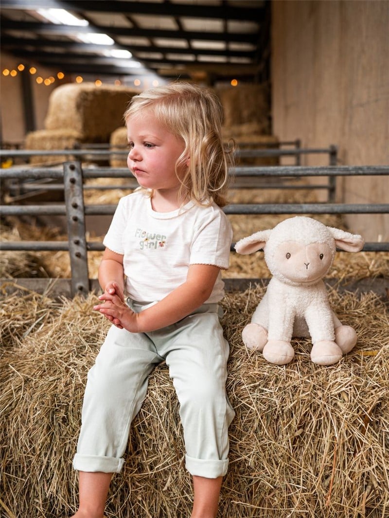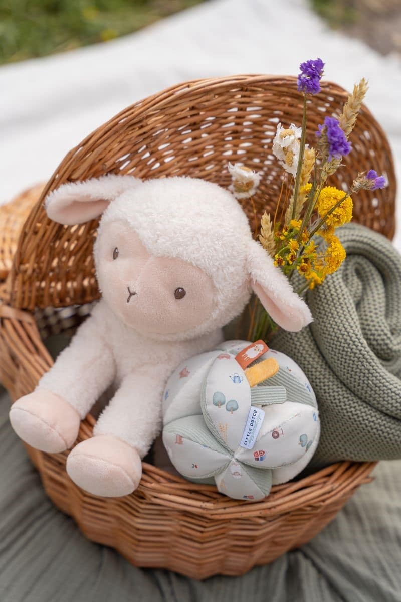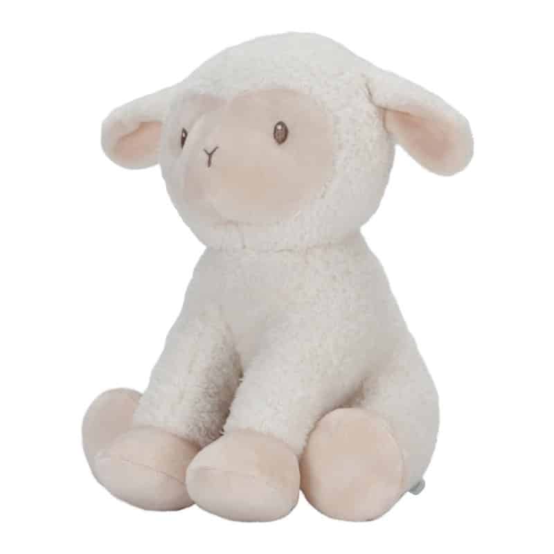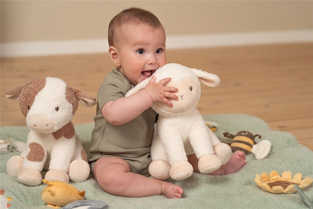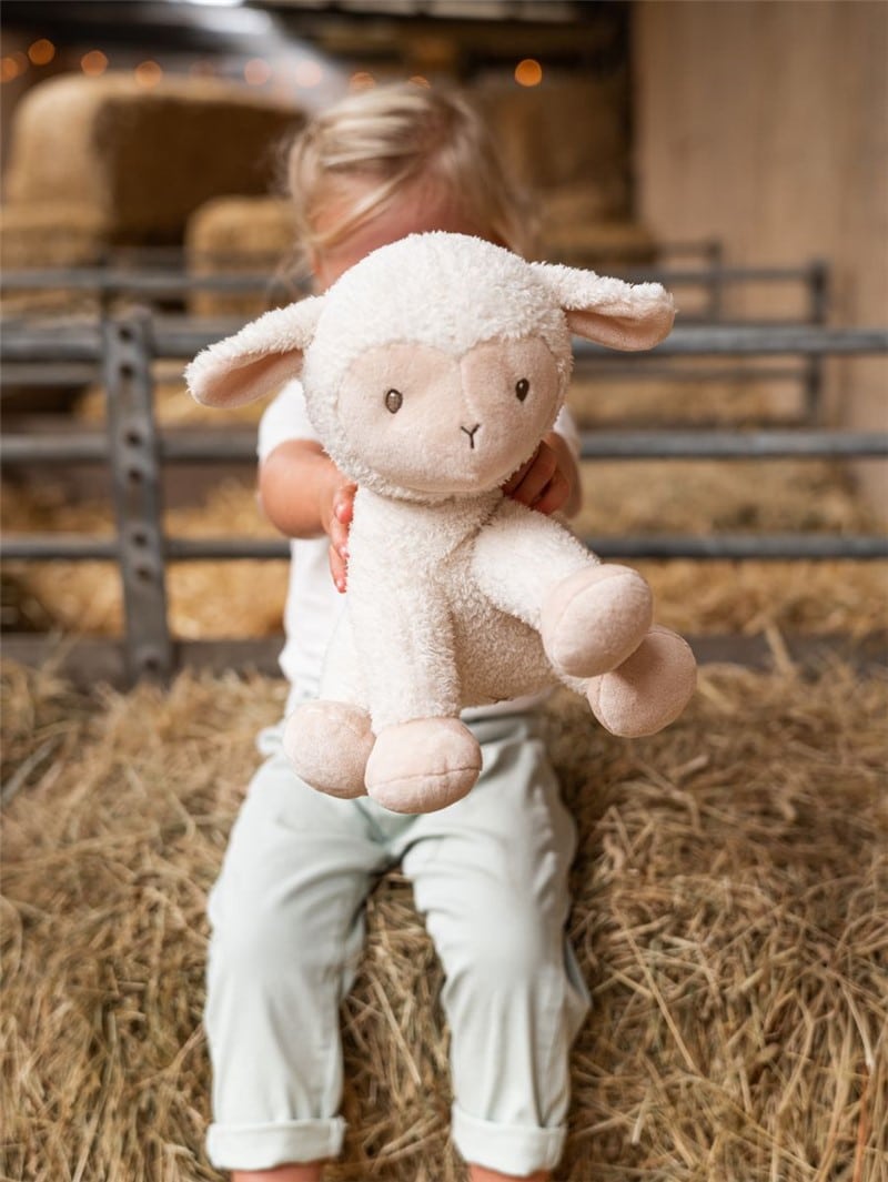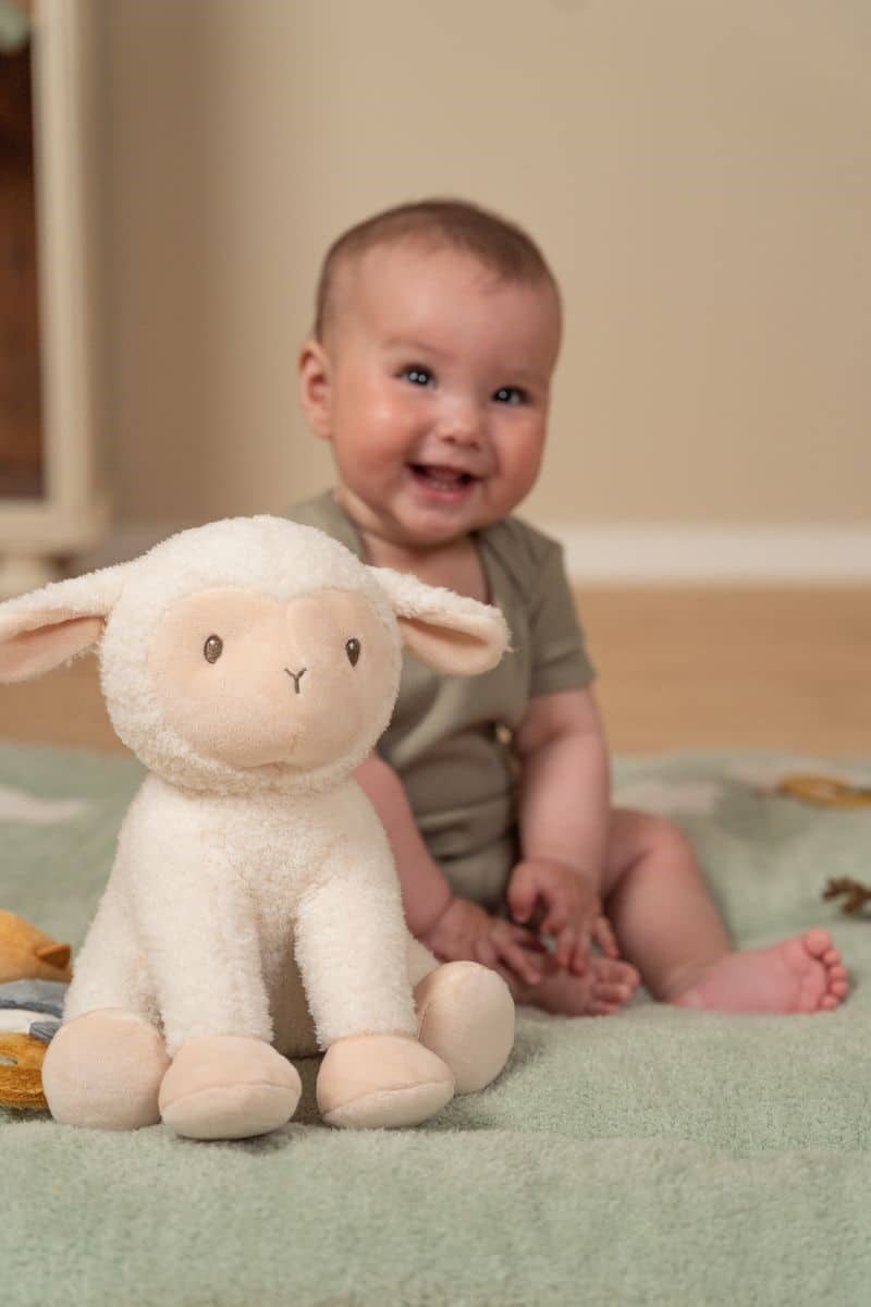 A esta oveja le encanta jugar. A ella le gusta quedarse contigo y puede llevarla a cualquier parte. También, asegúrate de conocer a los amigos de esta linda oveja: la gallina, la vaca, el cerdo y el ganso. Juntos tienen aventuras en la granja. Esta ovejita está hecha maravillosamente con materiales suaves, lo que la hace increíblemente amigable y tierno.