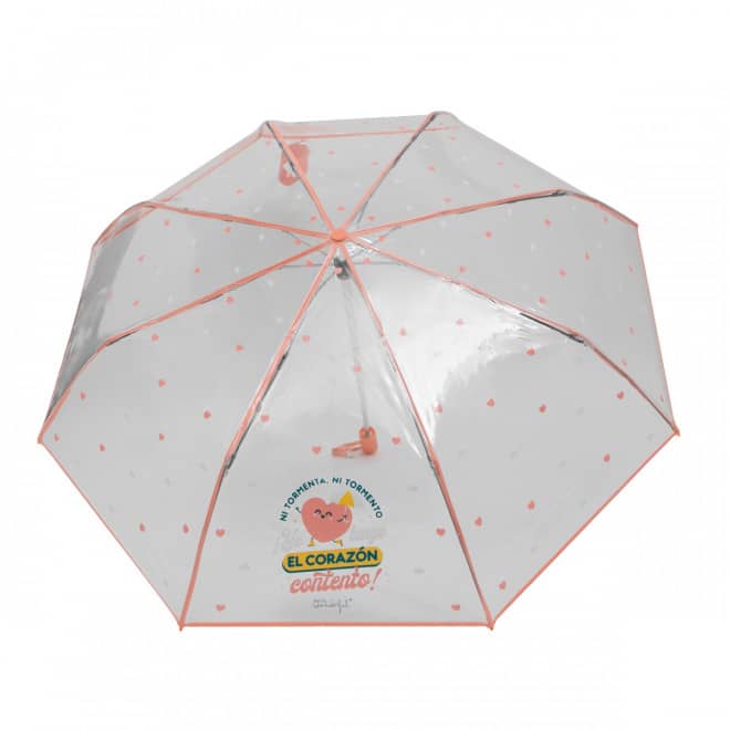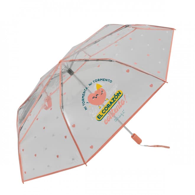 Paraguas mediano transparente – Ni tormenta, ni tormento. ¡Yo tengo el corazón contento!